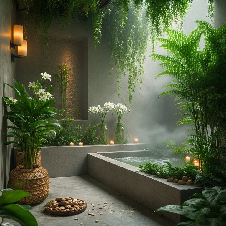 Ambientes úmidos são ideais para espécies como lírio-da-paz, avencas e bambu-da-sorte. Elas proporcionam um clima de spa natural, além de ajudarem na qualidade do ar.